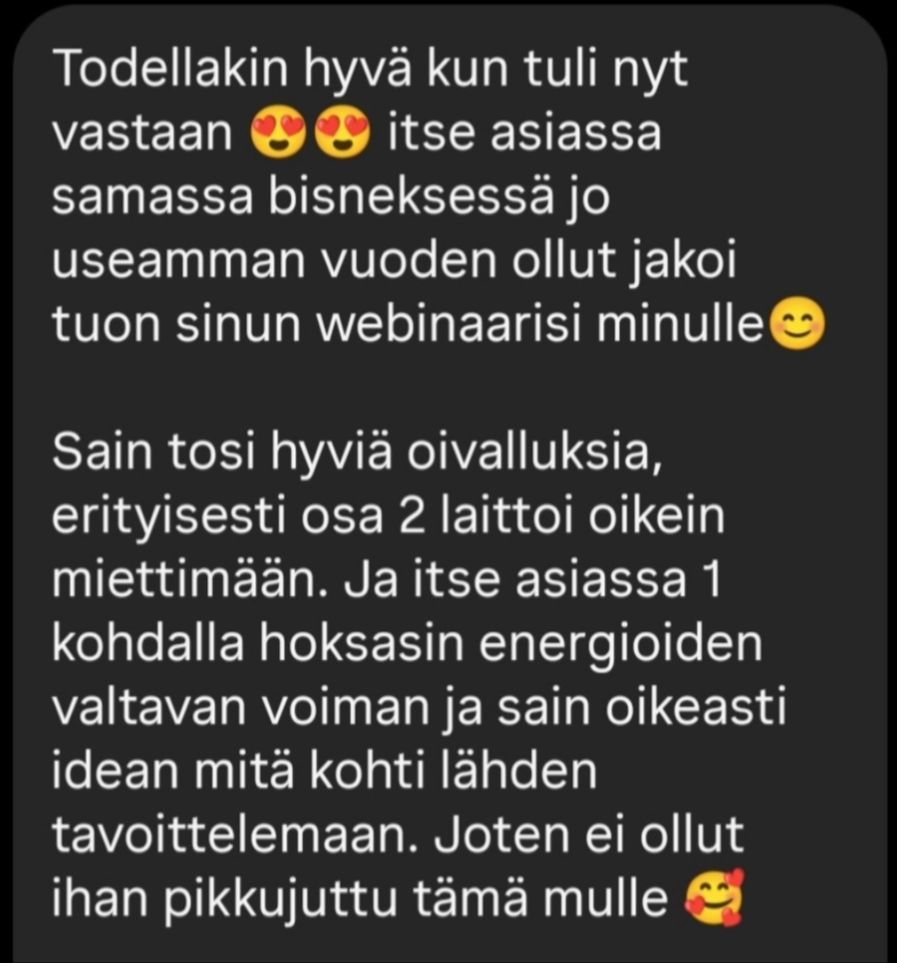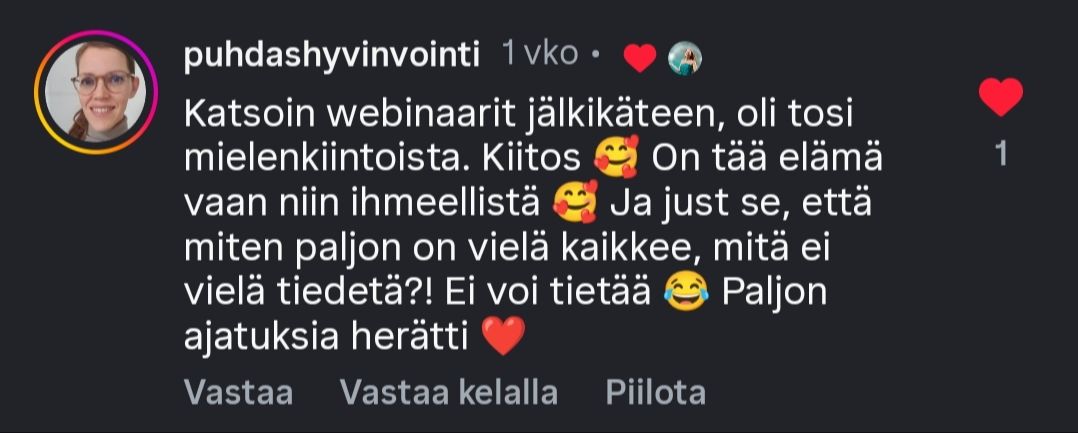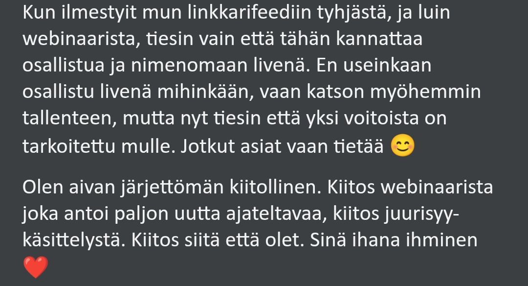 Ja etenkin kun haluat enemmän hyviä asioita sun elämään, tilaa Viritetty vastaanottamaan webinaarien tallenteet ILMAISEKSI!
